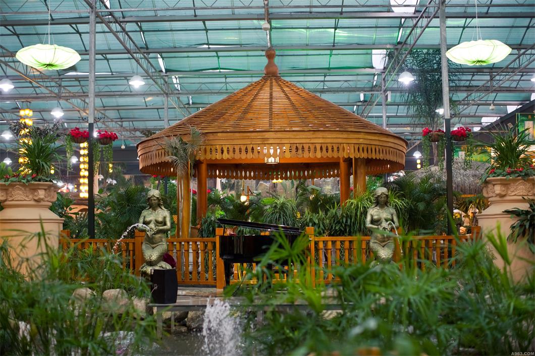 就餐于此,抬頭藍天白云,俯首小橋流水,傾聽自然之韻,品嘗無公害美食,仿佛一下子從喧囂的都市,飛到了世外桃源。生態餐廳是在設施農業的基礎上發展而來的,它繼承了溫室設計的理念,并把農業生產與飲食文化有機的聯系起來,形成了一個全新的概念。
